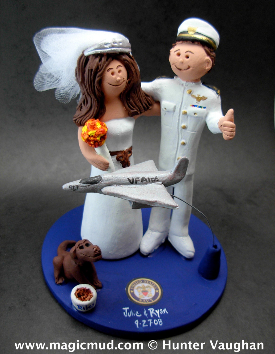 Handmade to your specifications by Hunter, Lois and Jupiter Vaughan of www.magicmud.com a kiln fired clay Military Marine's Wedding Cake Topper custom created just for you! This photographed listing is but an example of what we will create for you....simply email or call me toll free with your own info and pictures of yourselves, and we will sculpt for you a treasured memory from your wedding. call Hunter Contact Us