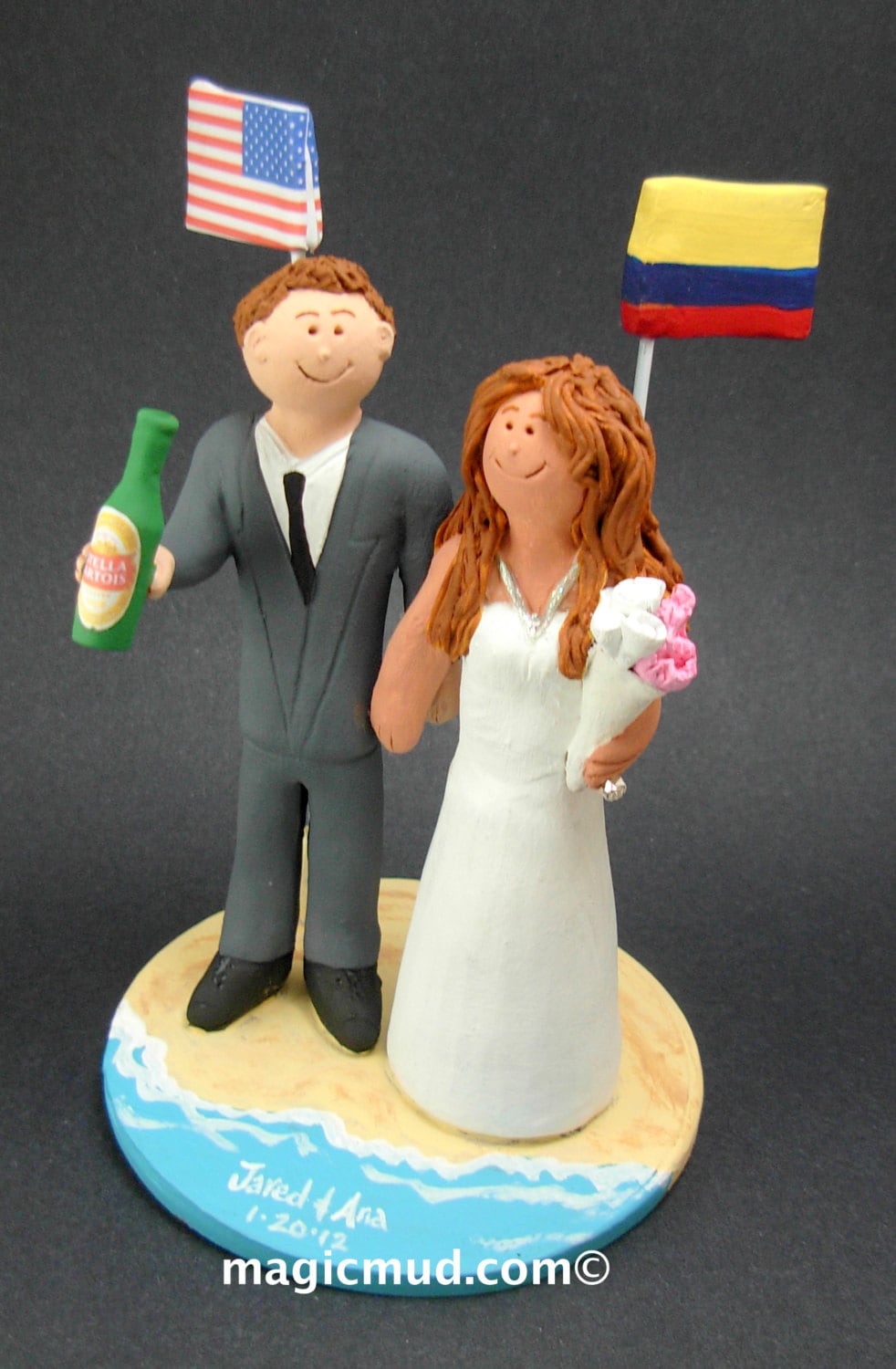 ...a fired clay International Flags Wedding Cake Topper custom created for you! This photographed listing is but an example of what we will handmake for you....simply email or call us toll free with your own info and pictures of yourselves, and we will sculpt for you a treasured figurine for your wedding.