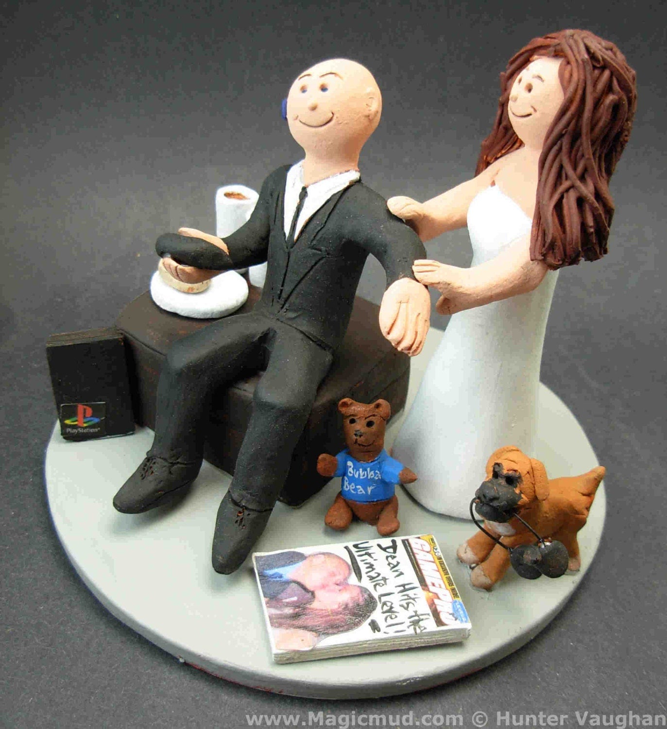 Bride and Groom Playing Board Game Wedding Cake Figurines, created just for you!