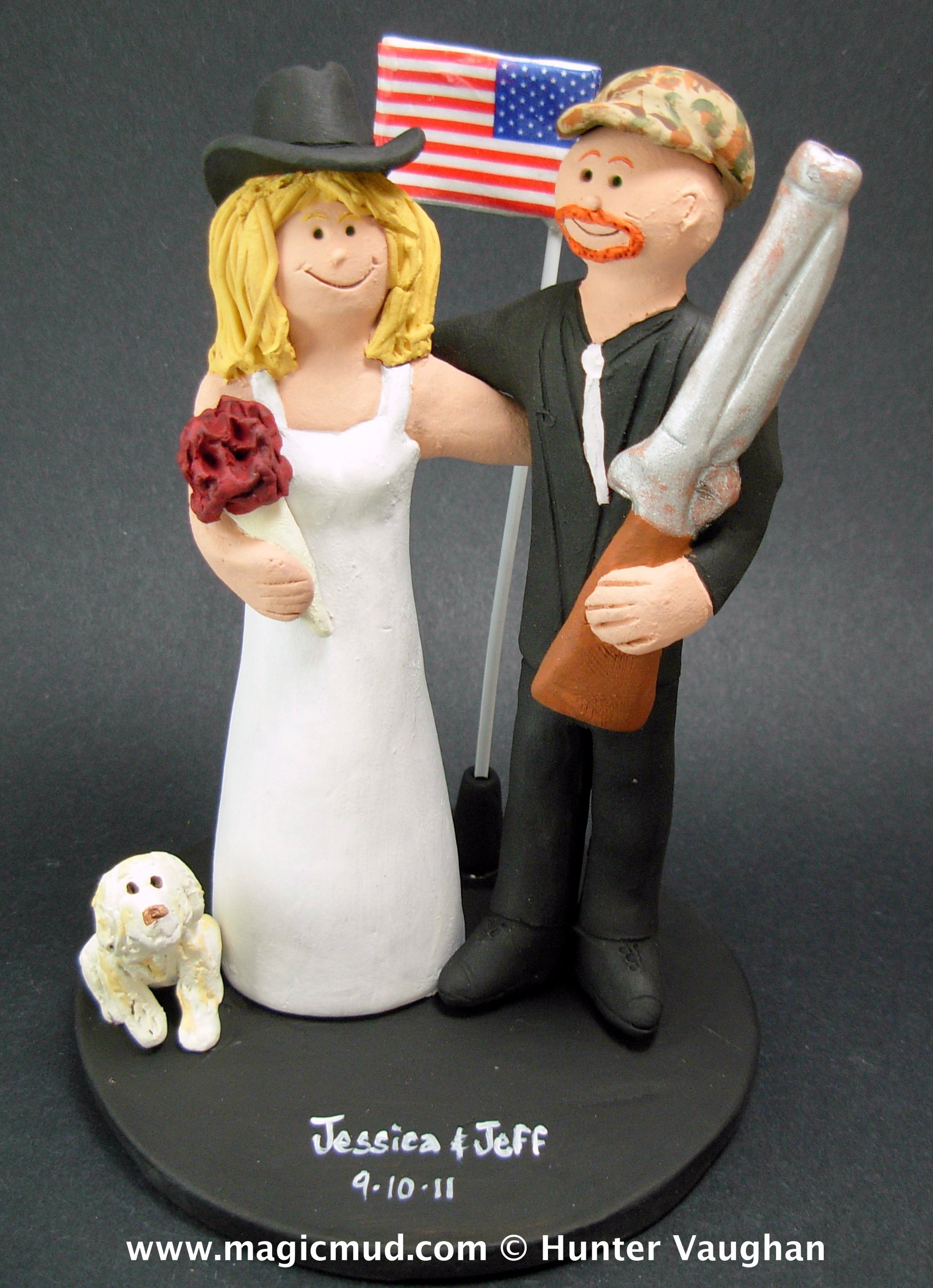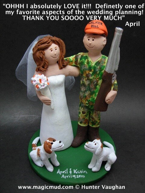 Custom made wedding cake toppers for all hunters and hunting brides and grooms! The perfect wedding keepsake that is custom hand made to your specifications. Perfect for duck, deer or any type of hunter, sportsman or outdoor enthusiast....atv riders and more!!