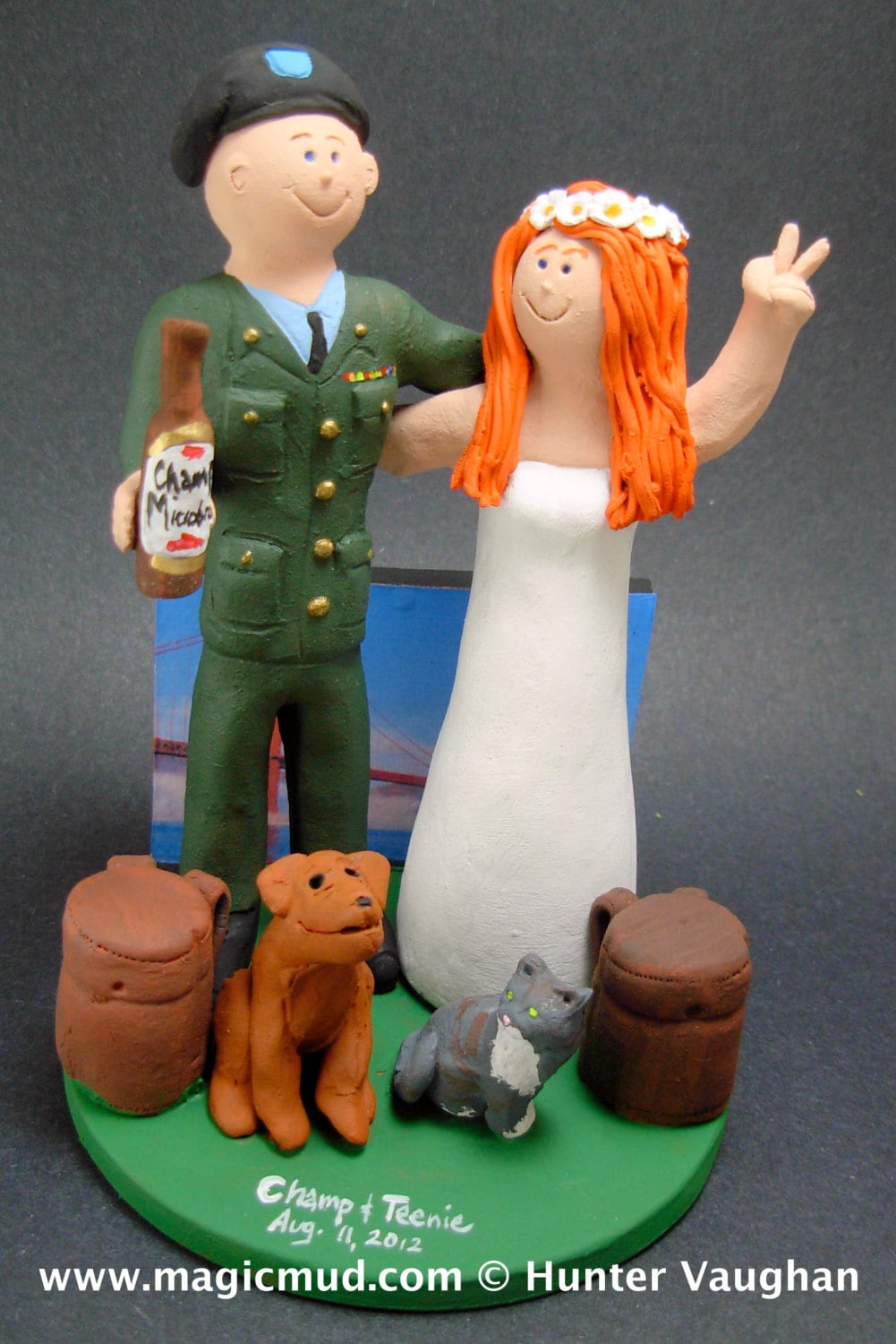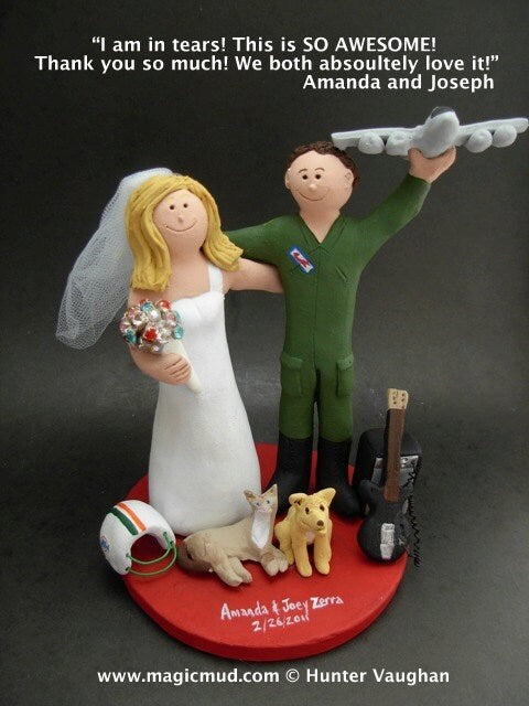 Marine's Wedding Cake Topper custom created for you! Perfect for the marriage of a Army Marine Groom and his Bride! This photographed listing is but an example of what we will create for you....simply email or call toll free with your own info and pictures of yourselves, and we will sculpt for you a treasured memory from your wedding!