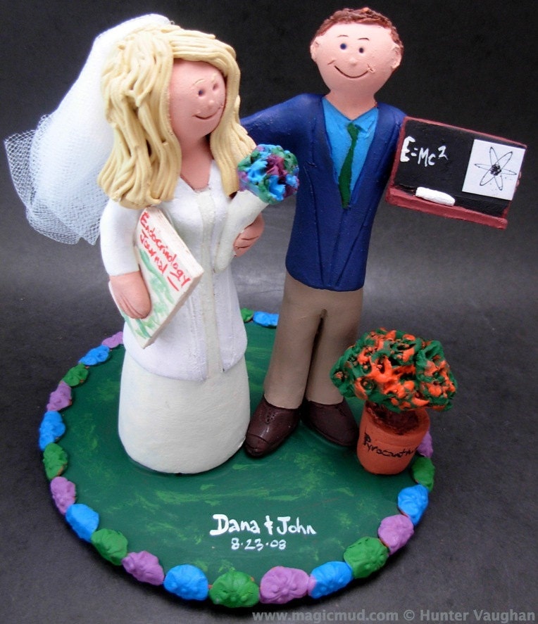 Teacher Bride Wedding Cake Topper, custom created for you! Perfect for the marriage of a Groom and his Bride! The photographs in this listing are but an example of what we will create for you....simply email or call toll free with your own info and pictures of yourselves, and we will sculpt for you a treasured memory from your wedding!