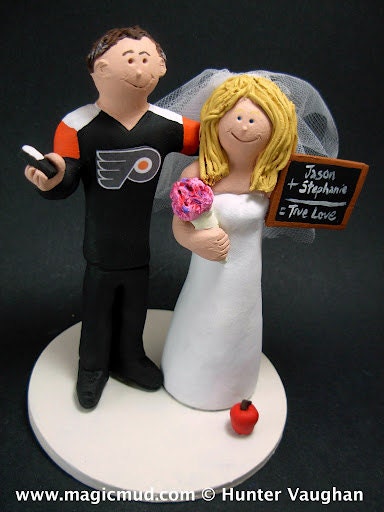 Teacher's Wedding Cake Topper, Philadelphia Flyers Wedding Cake Topper, Hockey Groom Wedding Cake Topper, Teacher Bride Wedding Cake Topper