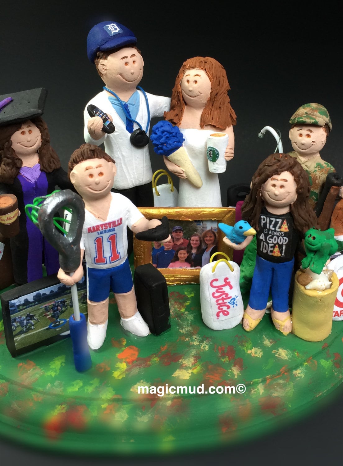 ...a fired clay Wedding Cake Topper for a Blended or Mixed Family, custom created for you! Don't you want to include the kids in your wedding cake topper? Handmade to your specifications by Hunter, Jupiter and Lois Vaughan of www.magicmud.com