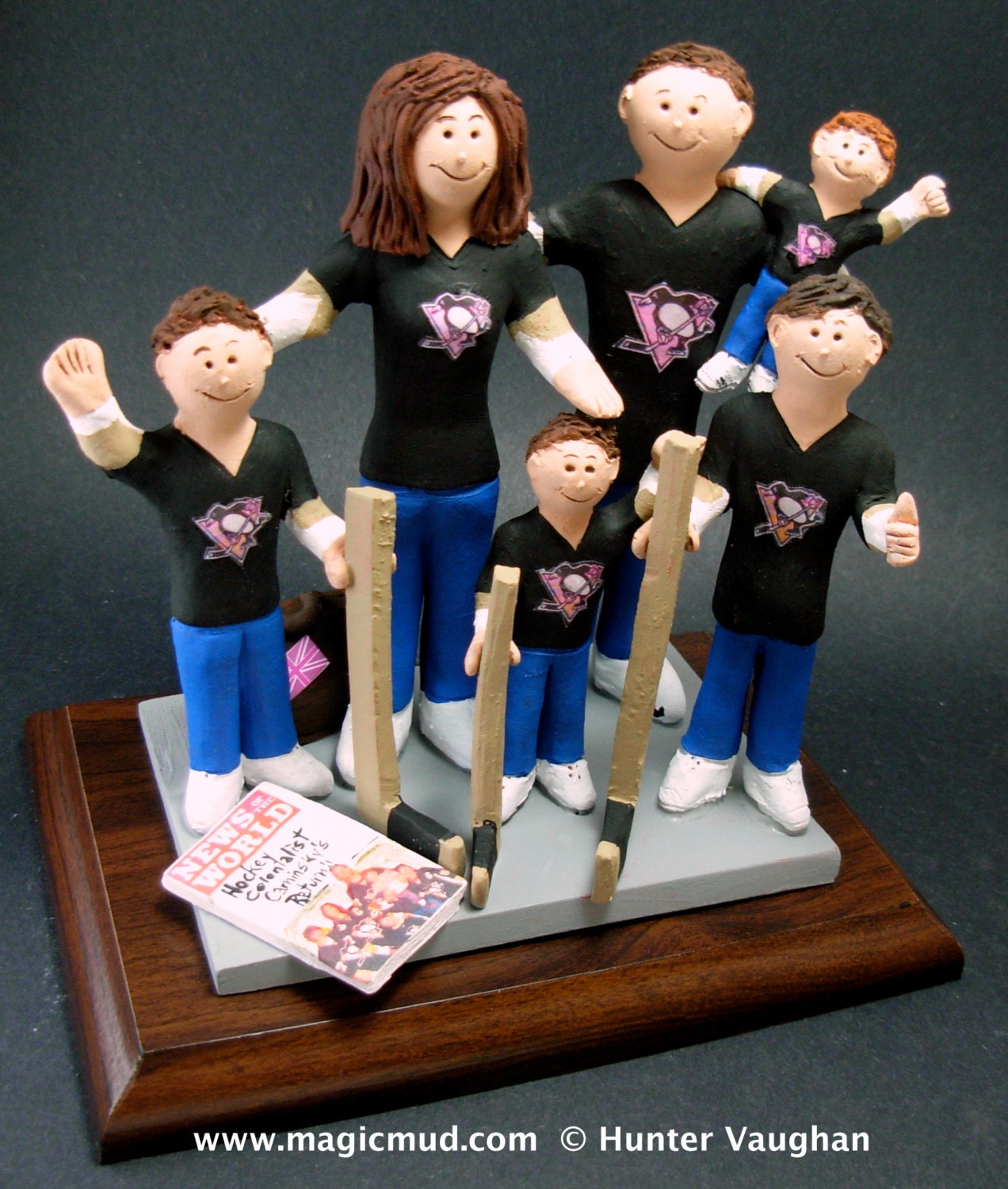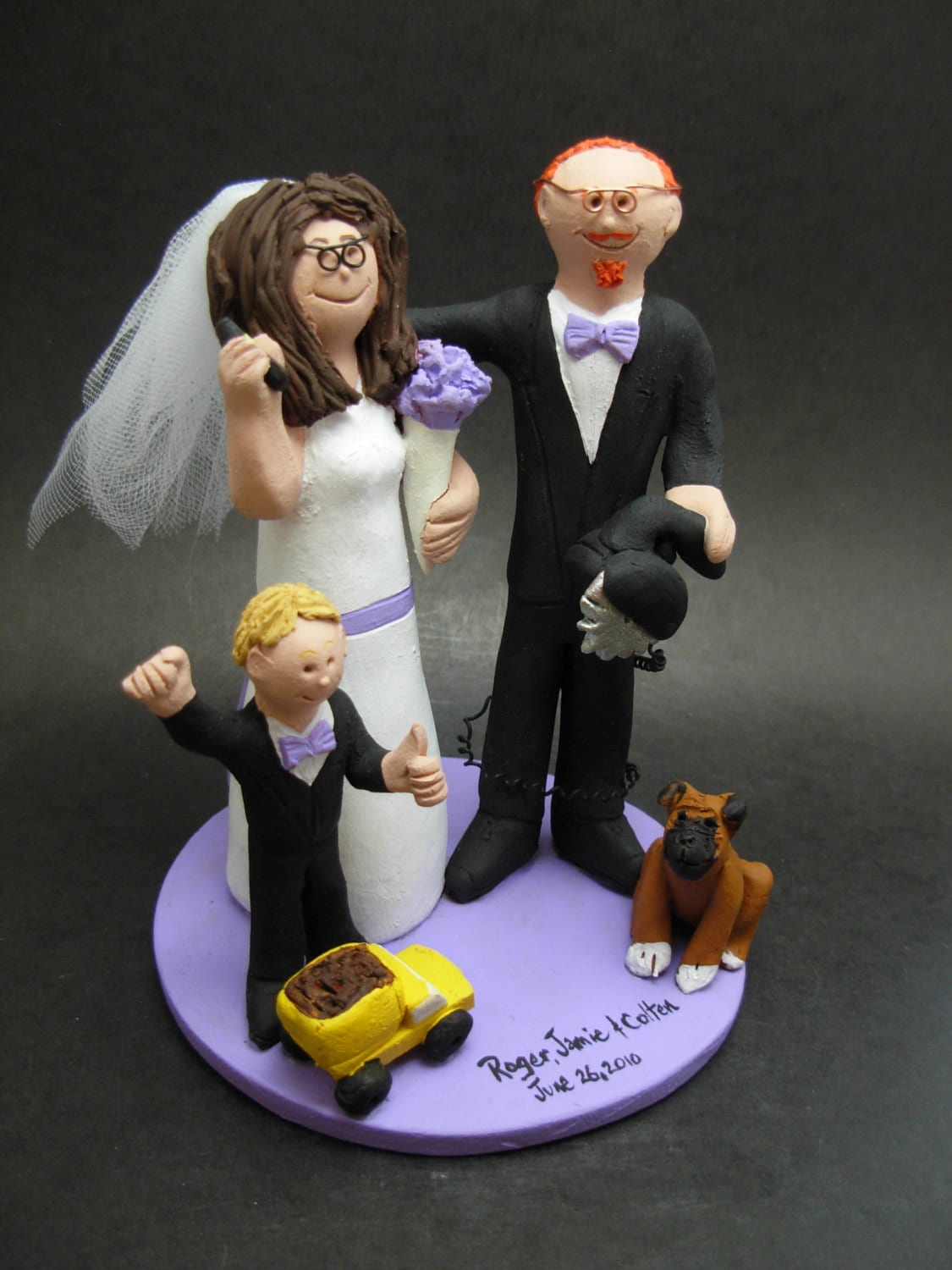...a fired clay Wedding Cake Topper for a Blended or Mixed Family, custom created for you! Don't you want to include the kids in your wedding cake topper? Handmade to your specifications by Hunter, Jupiter and Lois Vaughan of www.magicmud.com