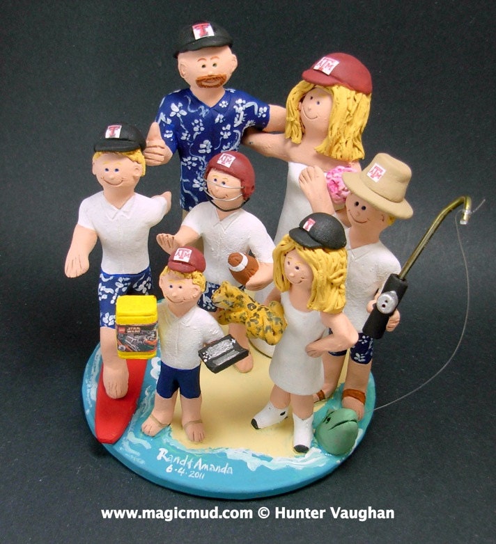 ...a fired clay Wedding Cake Topper for a Blended or Mixed Family, custom created for you! Don't you want to include the kids in your wedding cake topper? Handmade to your specifications by Hunter, Jupiter and Lois Vaughan of www.magicmud.com