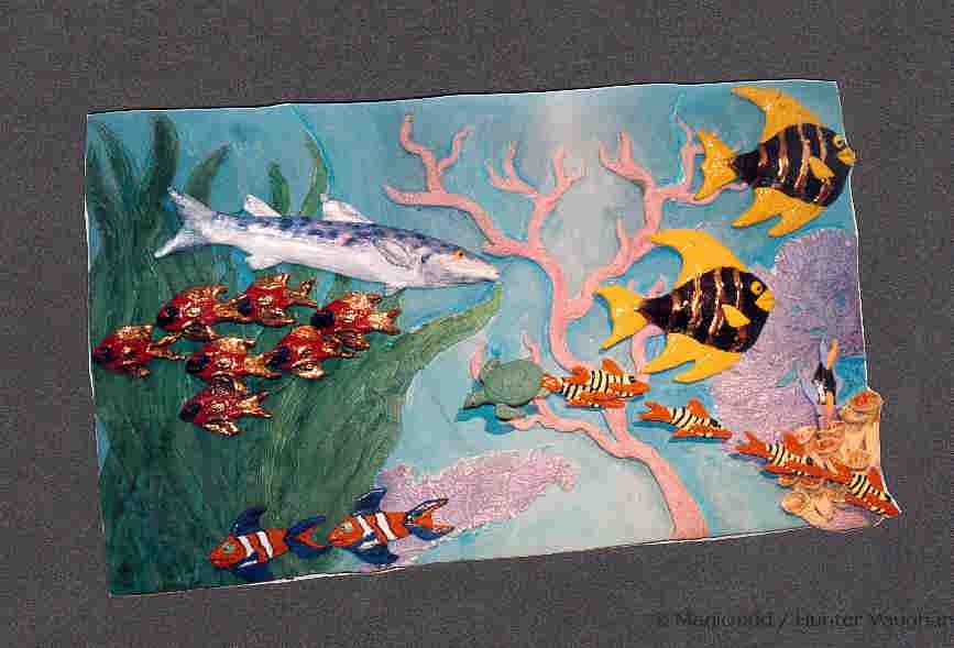 Aquatic Ceramic Tile Murals....Inspirational one of a kind Aquatic Art Wall Hangings created with your location, coloring, favorite species of sea life and design considerations in mind. Sculpted ceramic tiles featuring Whales, Dolphins, Sea Turtles and Tropical Fishes, each is an original, sculpted, colored, fired and glazed prior to reassembly and mounting . View our gallery of examples and let your imagination swim freely. We will create an Aquatic Ceramic Tile Mural to your specifications, an Aquatic Art Wall Hanging that will grace your home or office space.