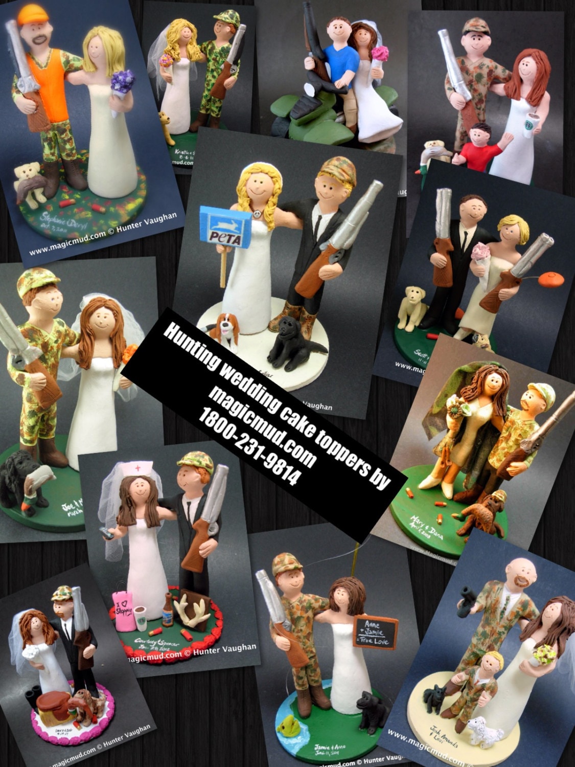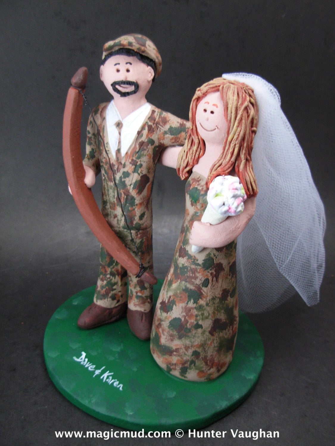 Bow Hunting Wedding Cake Topper custom created for you! Perfect for marriage of a Hunting Groom and his Bride! This photographed listing is but an example of what we will create for you....simply email or call toll free with your own info and pictures of yourselves, and we will sculpt for you a treasured memory from your wedding!