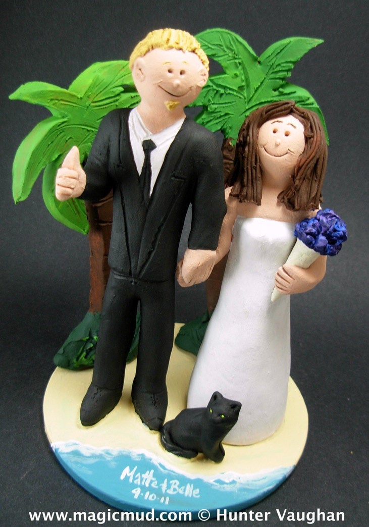Bride and Groom on Beach, Destination Wedding Cake Toppers, Custom Made Beachside Wedding Cake Topper - Hawaiian Wedding Cake Topper