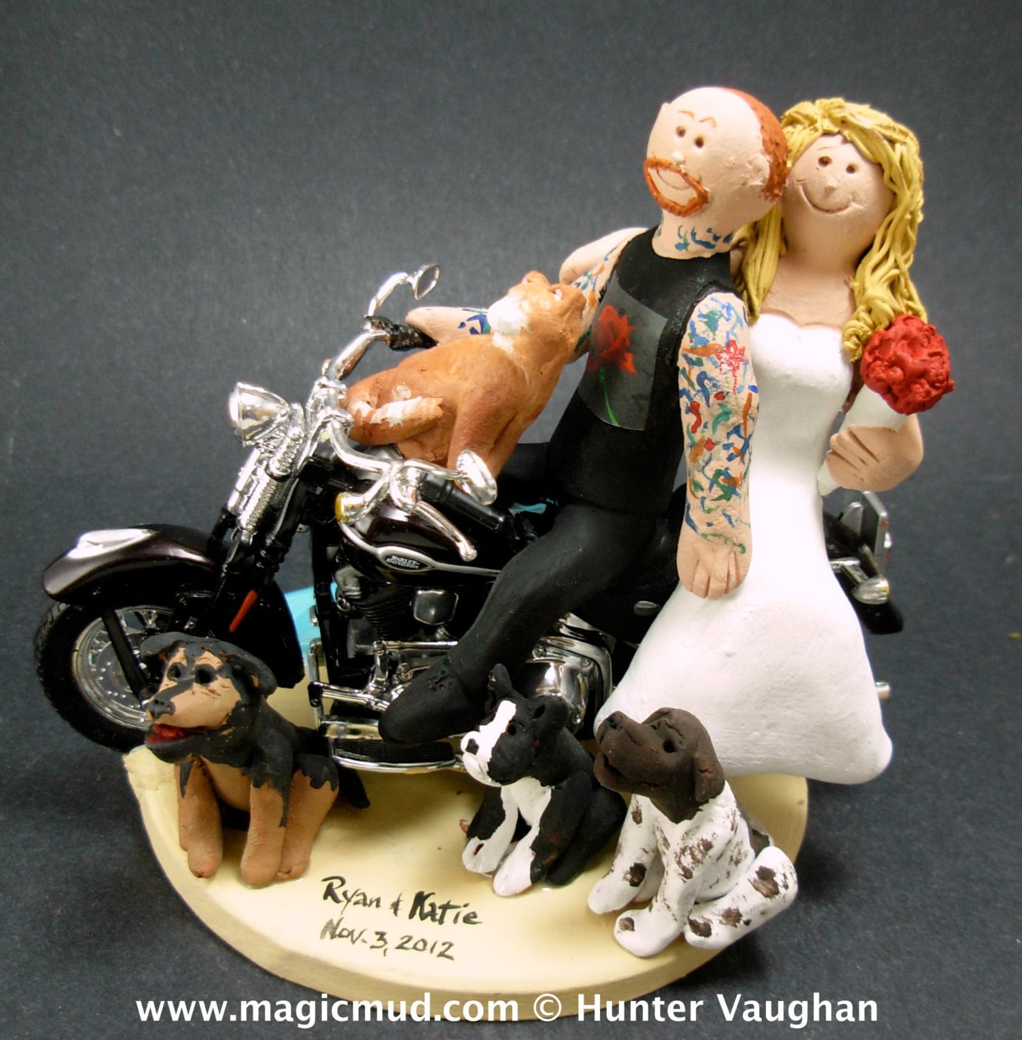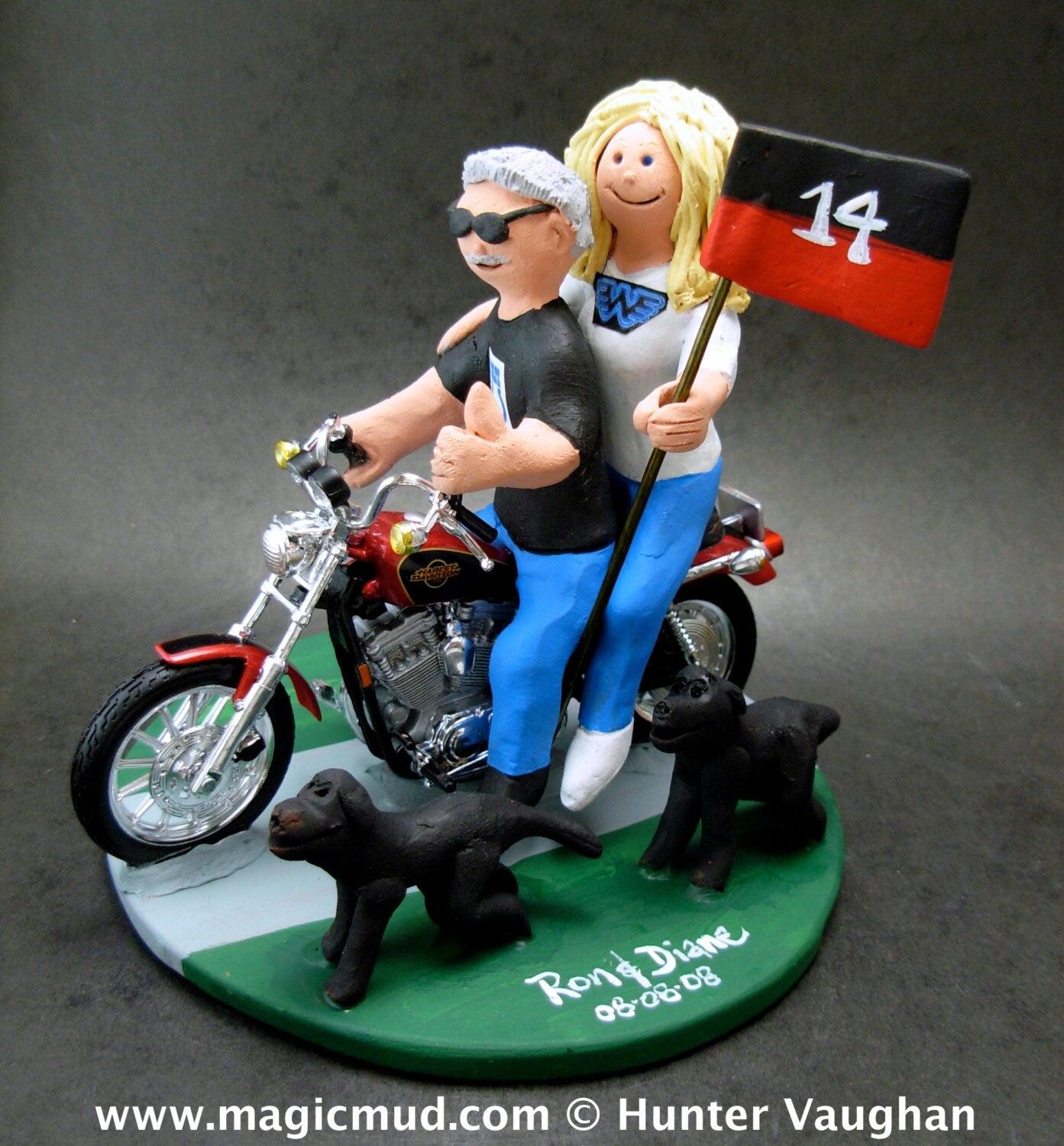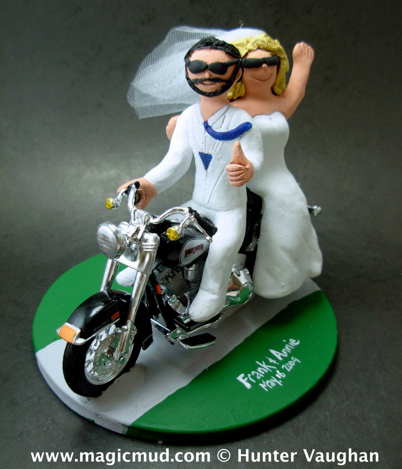 Harley Davidson motorcycle wedding cake topper, custom made just for you. The perfect wedding keepsake for a Harley riding bride and groom.