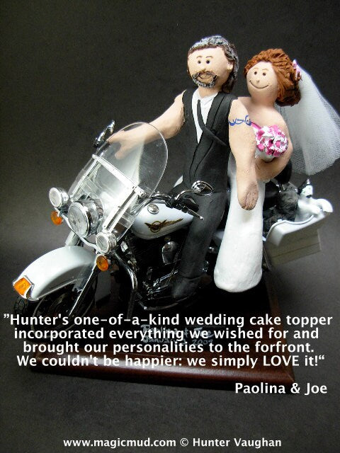 Handmade to your specifications by Hunter Vaughan of www.magicmud.com a fired clay KTM Dirt Bike Motorcycle Wedding Cake Topper custom created for you! This photographed listing is but an example of what I will create for you....simply email or call me toll free with your own info and pictures of yourselves, and I will sculpt for you a treasured memory from your wedding. call Hunter Contact Us
