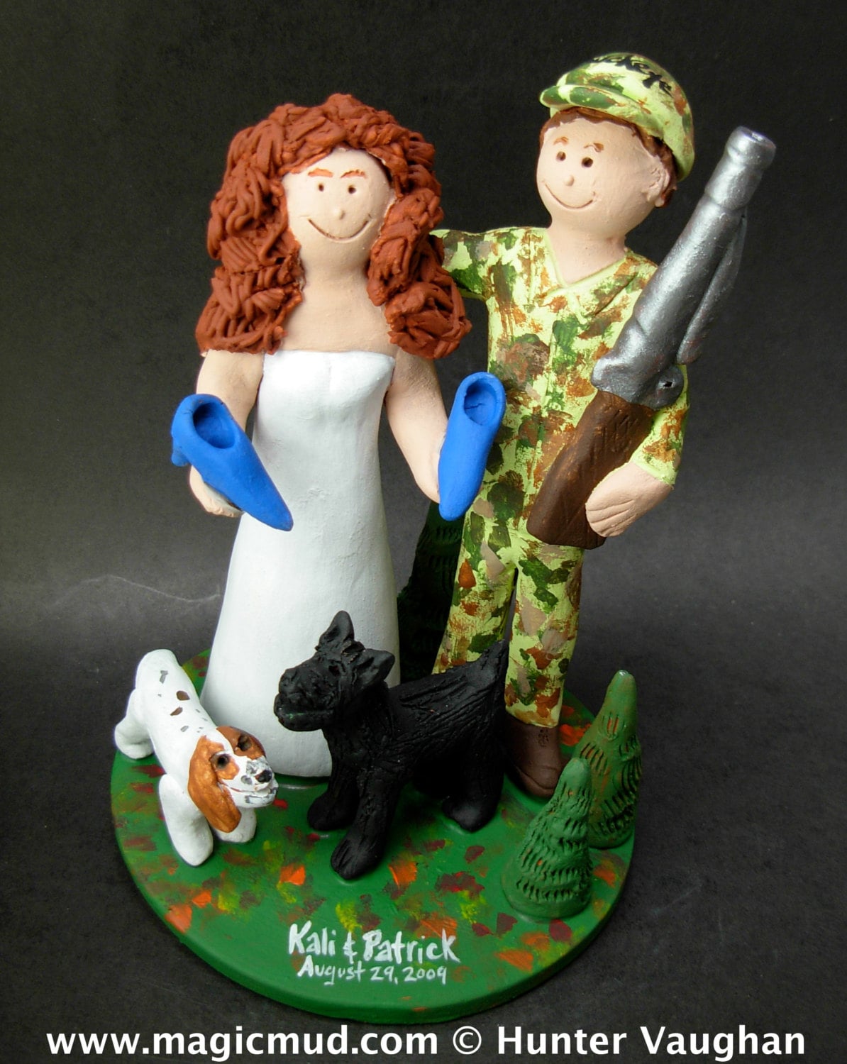 Hunting Wedding Cake Topper custom created for you! Perfect for marriage of a Hunting Groom and his Bride! This photographed listing is but an example of what we will create for you....simply email or call toll free with your own info and pictures of yourselves, and we will sculpt for you a treasured memory from your wedding!