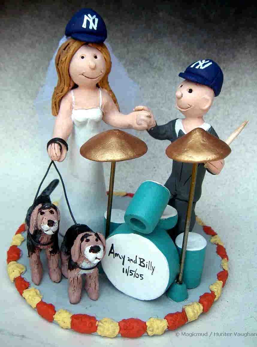 Any type of musicians can be made to order for you...in this case we have a drummer and his bride and their pet dogs. Below are the comments from the couple who ordered the Drummers Wedding Cake Topper