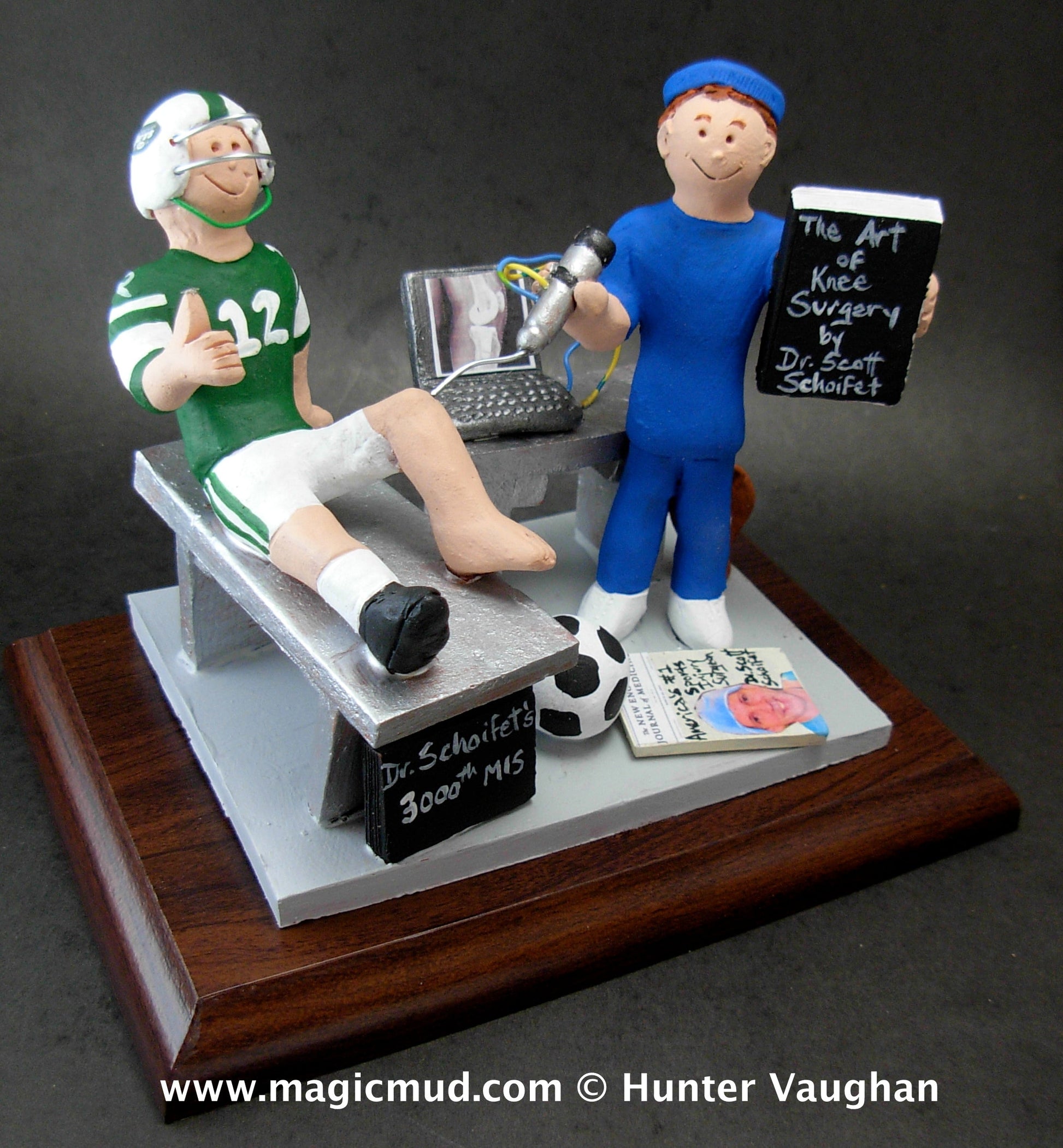 here we have a unique 3 dimensional work of clay art... a personalized gift figurine custom made for a knee surgeon... specifically an orthopedic or orthopaedic surgeon,